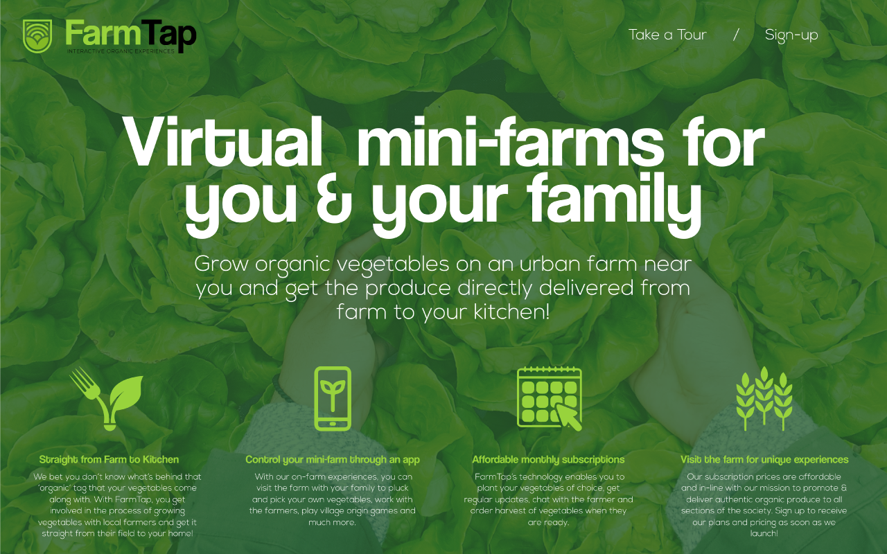 FarmTap was ideated to provide urban farmers with a sustainable and advanced income source while directly serving the end consumers with fresh harvest (less than 5 hours from harvest). The goal was to provide higher prices for the farmer's harvest and eliminating the hideous middle-men in the selling process.